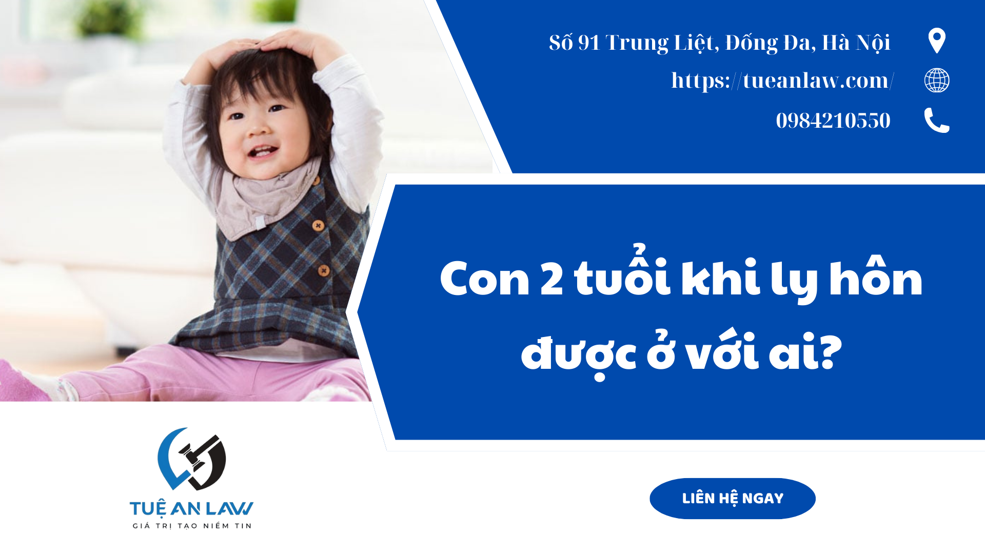 Trên đây là tư vấn của Tuệ An LAW về: “Con 2 tuổi khi ly hôn được ở với ai?” theo quy định của pháp luật mới nhất. Nếu còn vướng mắc, chưa rõ hoặc cần hỗ trợ pháp lý khác, vui lòng liên hệ ngay Luật sư để được tư vấn miễn phí. Luật sư chuyên nghiệp, tư vấn miễn phí – 098.421.550.
