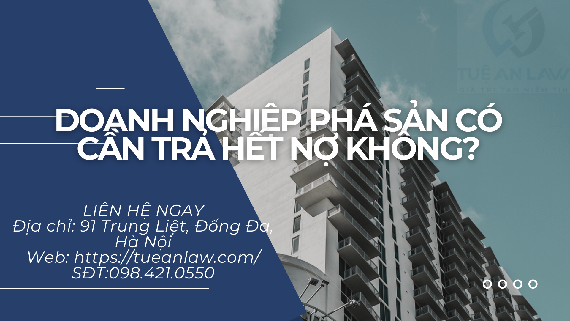 Trên đây là tư vấn của Tuệ An LAW về:Doanh nghiệp pháp sản có cần trả hết nợ không? ” theo quy định của pháp luật mới nhất. Nếu còn vướng mắc, chưa rõ hoặc cần hỗ trợ pháp lý khác, vui lòng liên hệ ngay Luật sư để được tư vấn miễn phí. Luật sư chuyên nghiệp, tư vấn miễn phí – 098.421.550.