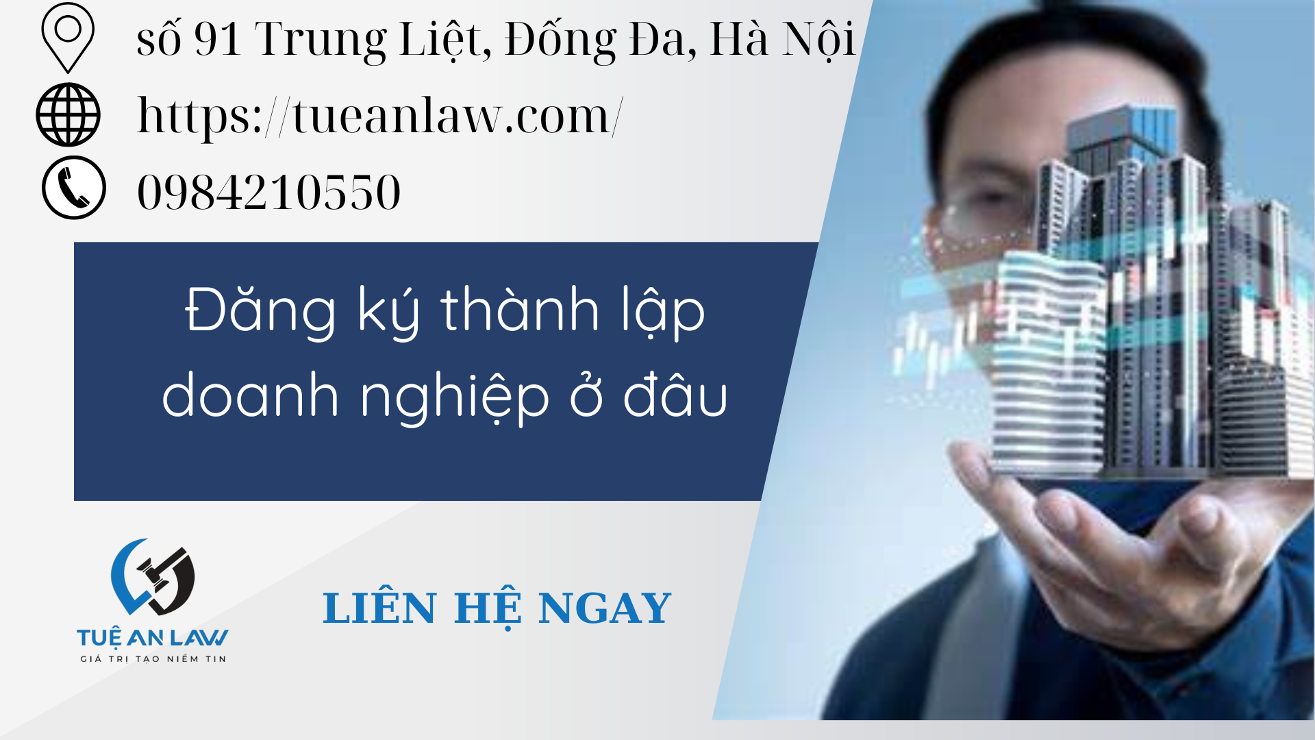 Trên đây là toàn bộ tư vấn của Tuệ An Law về “đăng ký thành lập doanh nghiệp ở đâu”. Nếu quý khách có bất kỳ thắc mắc và các vấn đề cần giải đáp xin hãy liên hệ với chúng tôi qua số điện thoại/zalo Tel: 094.821.0550