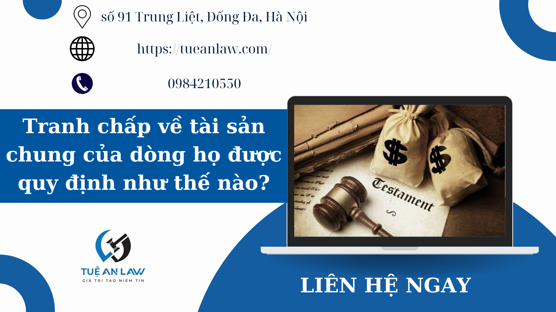 Trên đây là toàn bộ tư vấn của Tuệ An Law về “Tranh chấp về tài sản chung của dòng họ được quy định như thế nào?”. Nếu quý khách có bất kỳ thắc mắc và các vấn đề cần giải đáp xin hãy liên hệ với chúng tôi qua số điện thoại/zalo Tel: 094.821.0550 hoặc tham khảo bài viết sau: Tranh chấp tài sản là gì