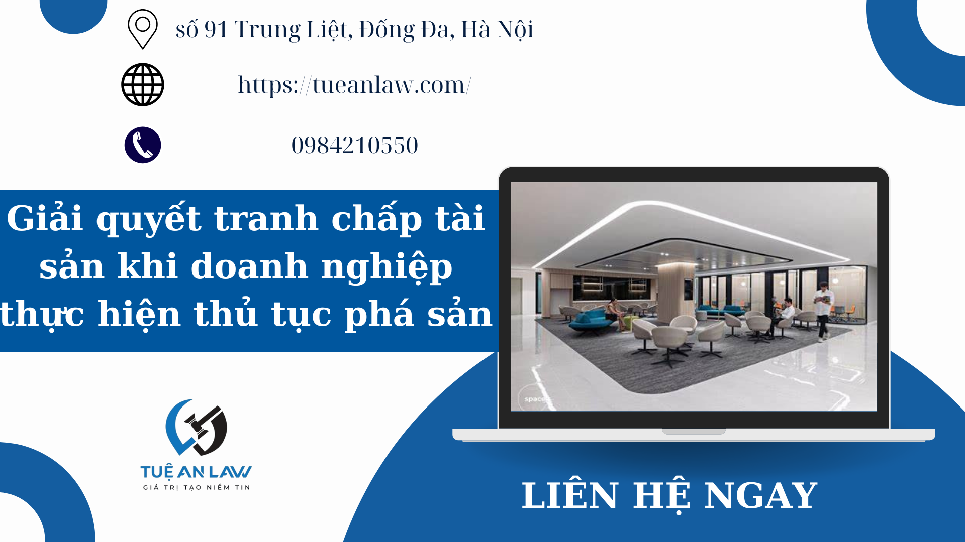 Trên đây là toàn bộ tư vấn của Tuệ An Law về “Giải quyết tranh chấp tài sản khi doanh nghiệp thực hiện thủ tục phá sản”. Nếu quý khách có bất kỳ thắc mắc và các vấn đề cần giải đáp xin hãy liên hệ với chúng tôi qua số điện thoại/zalo Tel: 094.821.0550