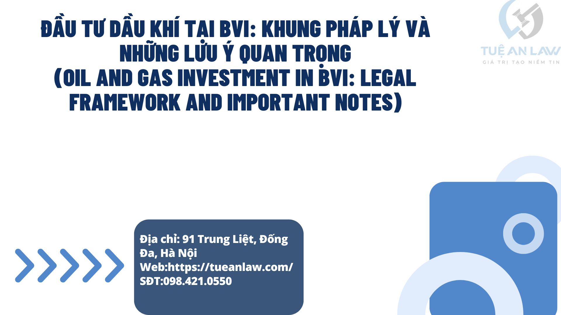Để hiểu thểm về thủ tục đầu tư dầu khí tại BVI cũng như những lưu ý về khung pháp lý quan trọng trong trường hợp này. Mời các bạn đón đọc bài viết sau của Luật Tuệ An để nắm rõ hơn về vấn đề nêu trên nhé.
