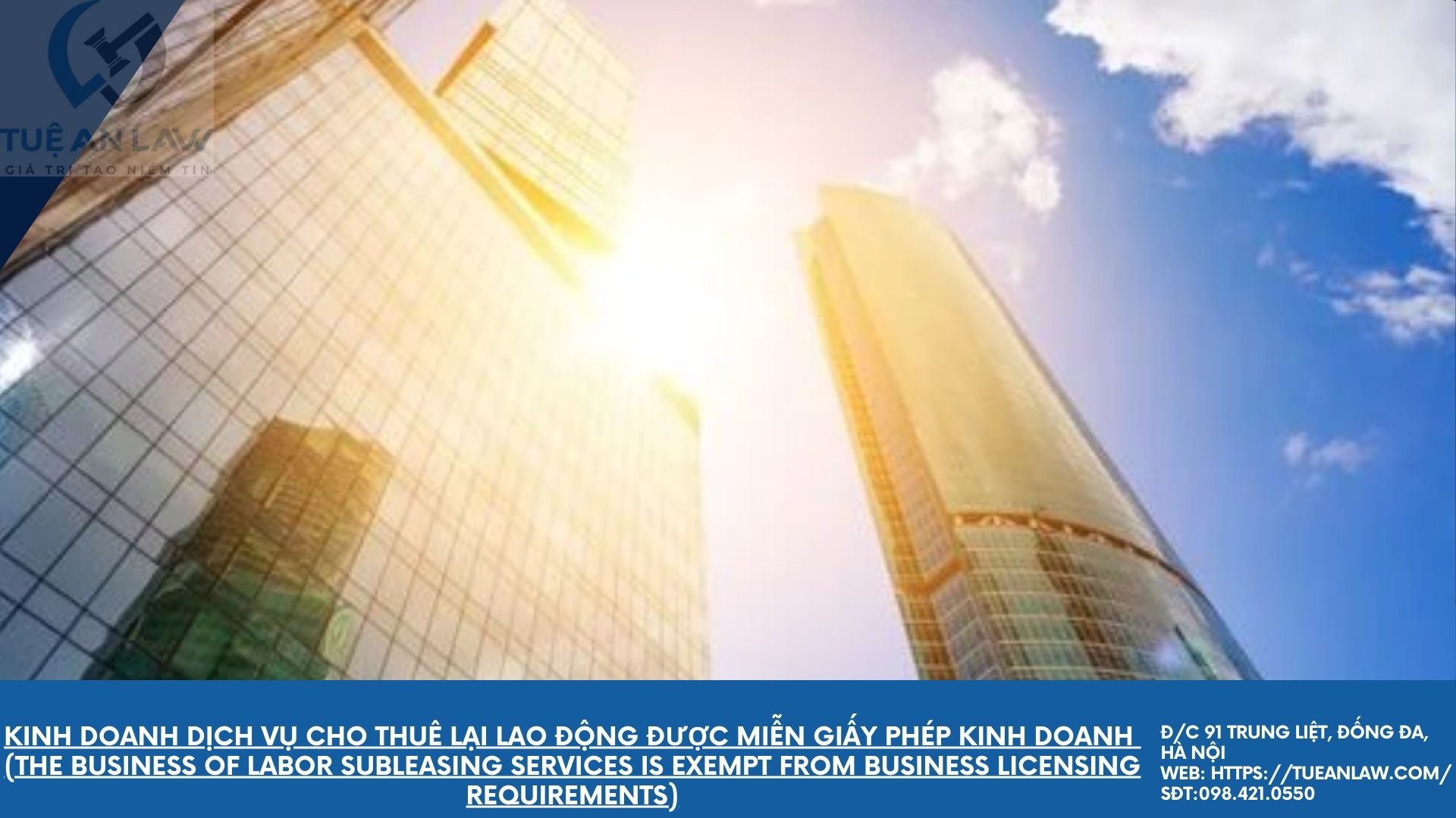 Trên đây là tư vấn của Tuệ An LAW về: “Kinh doanh dịch vụ cho thuê lại lao động được miễn giấy phép kinh doanh (The business of labor subleasing services is exempt from business licensing requirements)” theo quy định của pháp luật mới nhất. Nếu còn vướng mắc, chưa rõ hoặc cần hỗ trợ pháp lý khác, vui lòng liên hệ ngay Luật sư để được tư vấn miễn phí. Luật sư chuyên nghiệp, tư vấn miễn phí – 098.421.0550