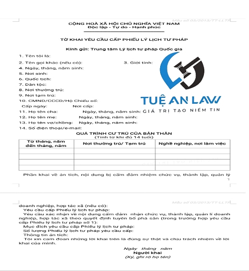 Dưới đây là mẫu khai lý lịch tư pháp mà bạn có thể tham khảo :