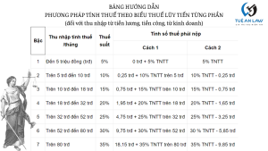 Phương pháp tính thuế lũy tiến từng phần được mô tả chi tiết trong Biểu thuế rút gọn như sau: