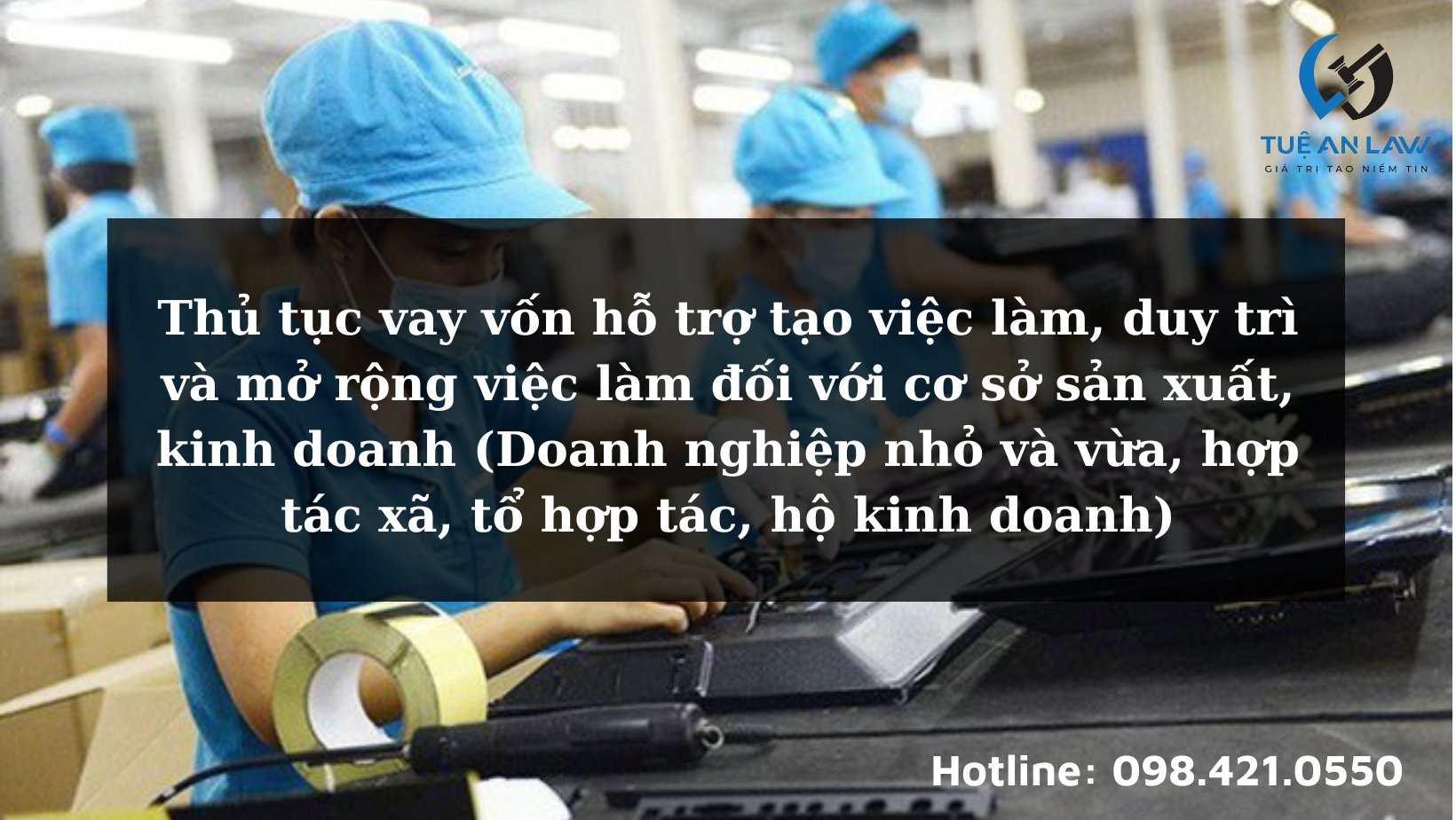 Gần đây Tuệ An Law nhận được rất nhiều thắc mắc về “Thủ tục vay vốn hỗ trợ tạo việc làm, duy trì và mở rộng việc làm đối với cơ sở sản xuất, kinh doanh (Doanh nghiệp nhỏ và vừa, hợp tác xã, tổ hợp tác, hộ kinh doanh)“, Tuệ An Law sẽ chia sẻ bài viết này để giải đáp những thắc mắc của khách hàng.